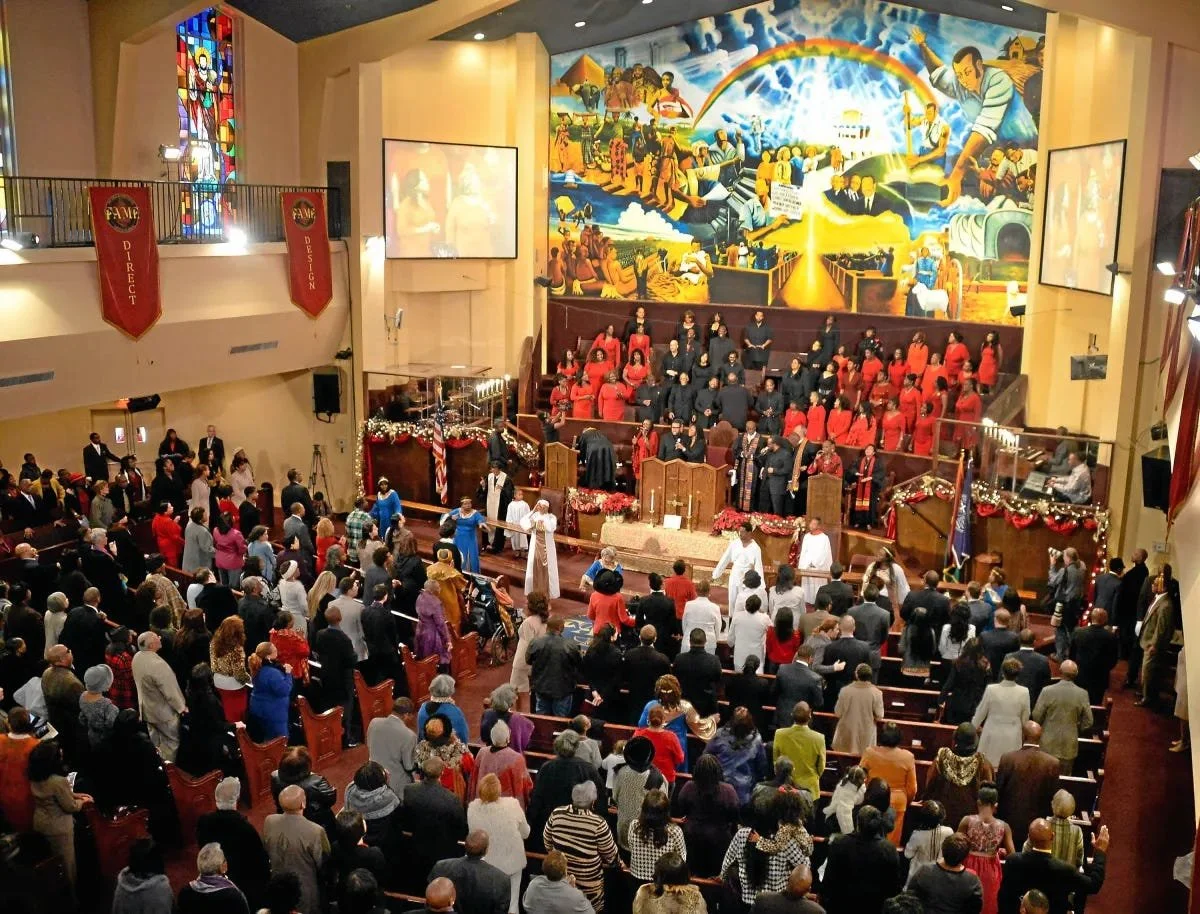 A 2013 memorial service for Nelson Mandela at LA’s First African Methodist Episcopal church (Photo Credit: Press-Telegram)